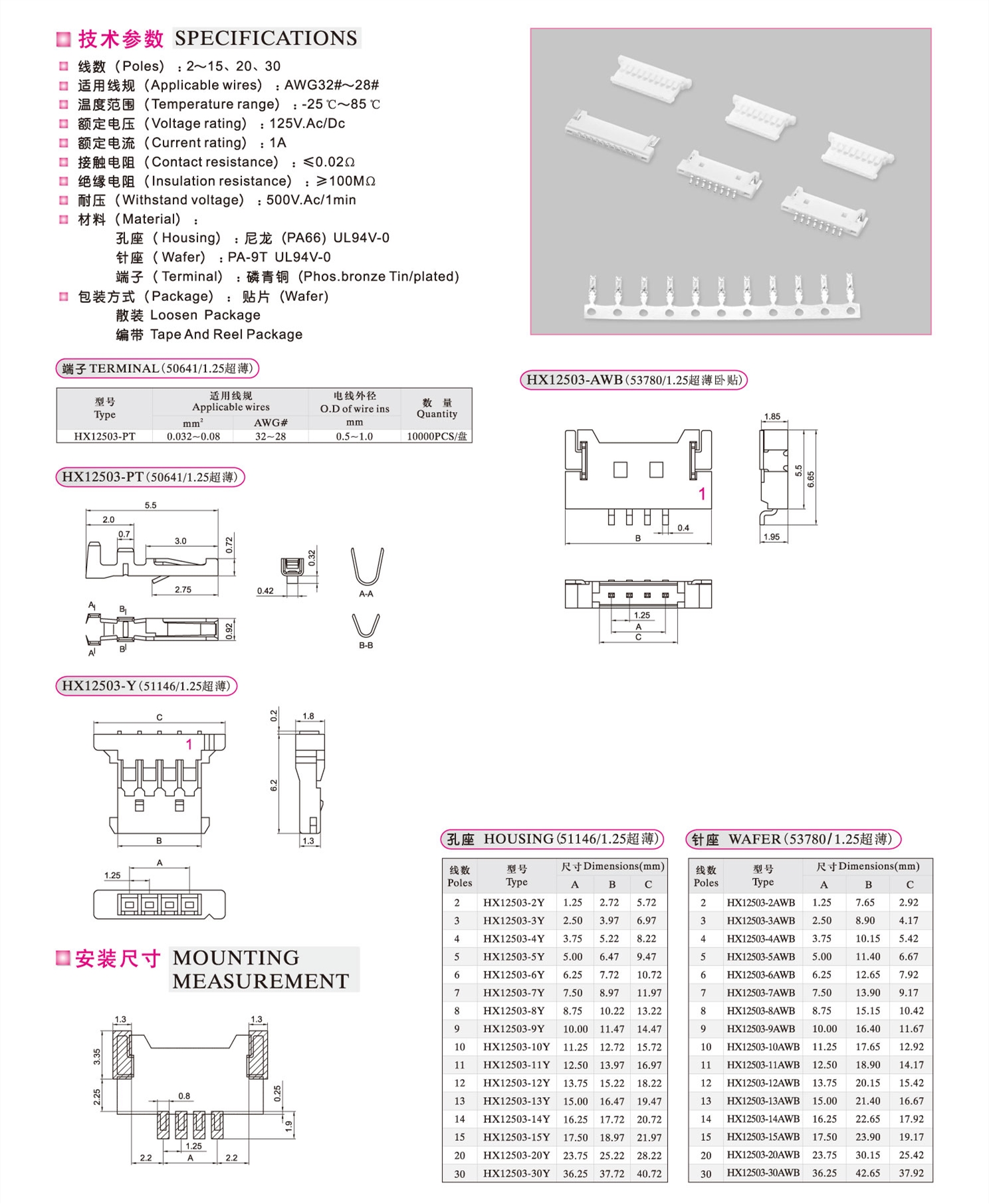 郎溪HX12503-(1.25超薄 SMT/51146、53780)- 贴片式连接器(1.25mm)
